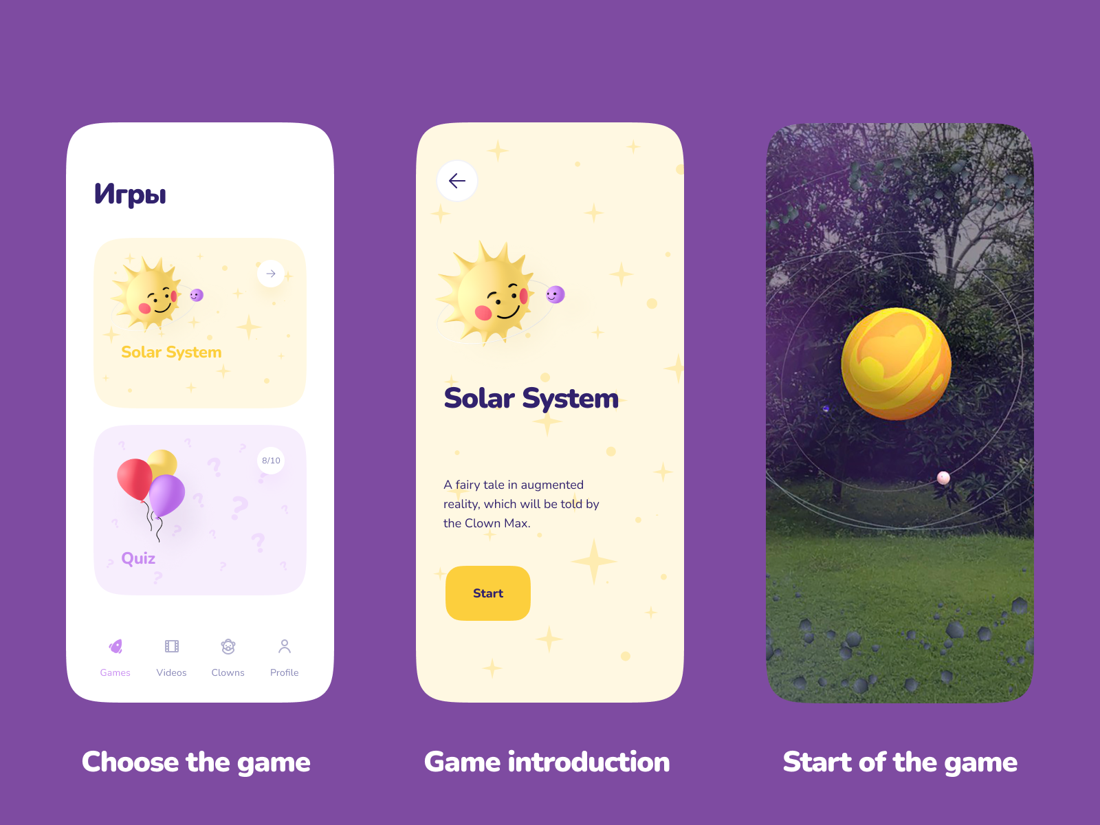 In the Games section a child can watch a fairy tale about the Solar System in augmented reality and play an educational quiz.